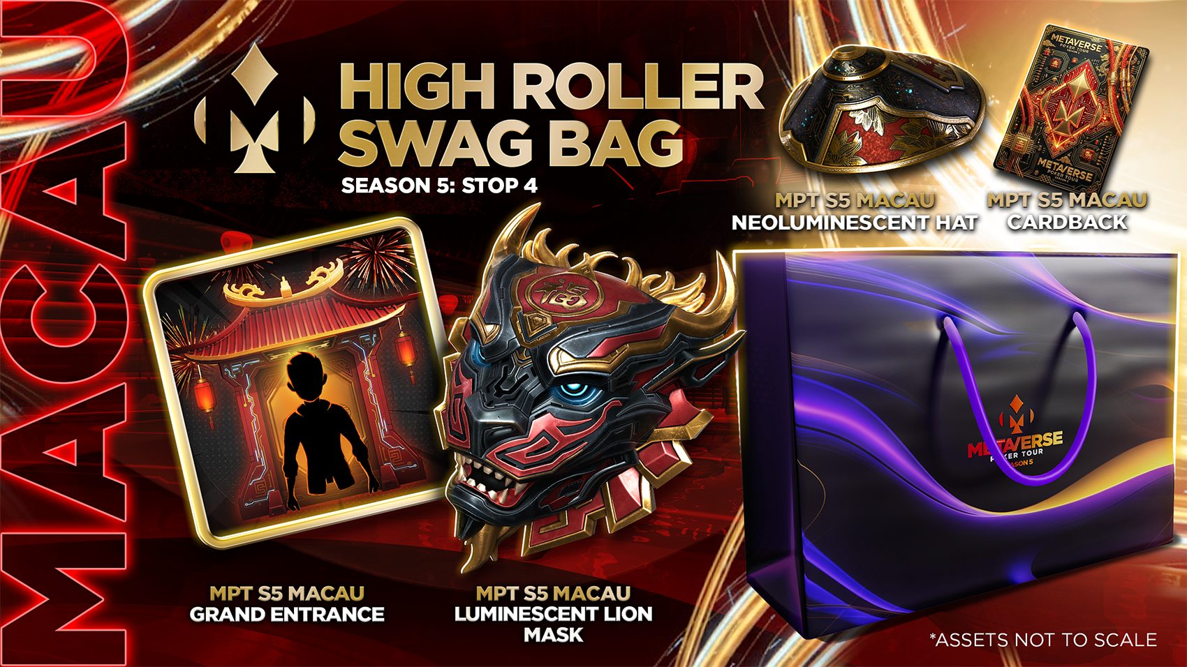 Compete in the Mini Main or Main Event to unlock the Neoluminescent Hat and an exclusive Macau 2050 Cardback. Or take on the UltraHigh Roller event to secure the full High Roller Swag Bag, featuring the powerful Luminescent Lion Mask and a cinematic Grand Entrance EEVFX that announces your arrival in true futuristic casino style!